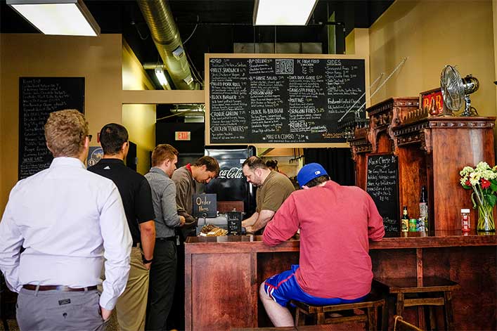 Ben and I took her advice and gave Omaha Culinary Tours a quick call. Luckily, they had space for us so we joined a walking foodie tour of the Old Market, enjoying Brie and berry beignets at the Culprit Cafe and spicy sake rolls at Blue Sushi. We strolled from one local business to the next and it required no plans on our part, exactly as we had hoped. Between bites of this and that, we talked with our fellow touring foodies. The group was a mix of locals and visitors, which I was surprised to discover. People here find that the food scene is constantly evolving, and—as Ron, an Omahan, said—this food tour makes it easy to keep up! Ben decided there was no better place to ask about our next meal.