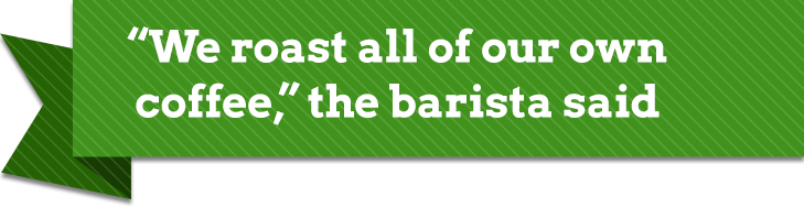 “We roast all of our own coffee,” the barista said while steaming the milk. Both drinks were slowly poured into simple white mugs with coffee art: a heart design on mine and a flower on Ben’s. “This is almost too beautiful to drink.” I said sipping my smooth espresso. “Where do you recommend for lunch?”